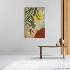 Das Moosbild Abstract Orjas ist ein künstlerisches Statement, das die Schönheit der Natur mit modernen Designelementen vereint. Dank konserviertem Moos in sanftem Creme, warmem Orange und strahlendem Gelb bringt dieses Bild Energie und Harmonie in Ihren Raum. Lange grüne Linien, die an Palmenblätter erinnern, verleihen der Komposition Dynamik und einen Hauch exotischen Sommers.