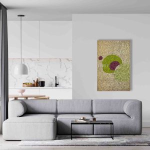 Das Moosbild Abstract Peso stellt eine perfekte Symphonie aus Farben und Formen dar. Im Mittelpunkt steht ein hellgrüner Kreis, der durch einen markanten weinroten Akzent belebt wird. Kleinere weinrote Details, die über das Bild verteilt sind, harmonieren wunderschön mit dem cremigen Hintergrund und schaffen ein Gefühl von Ausgewogenheit und Sanftheit. Das gesamte Werk wirkt wie eine abstrakte Naturszene – schlicht, elegant und ausdrucksstark.