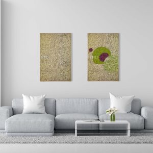 Entdecken Sie die harmonische Welt der Farben mit dem Moosbild Abstract Peso. Die einzigartige Kombination aus Hellgrün, Weinrot und Creme verleiht jedem Raum Ruhe und moderne Eleganz. Dieses handgefertigte, ökologische Kunstwerk vereint Natur und Design auf stilvolle Weise.