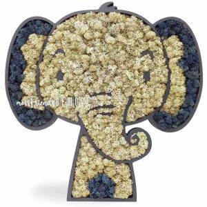 Der Elefant ist Teil der Moss Friends-Kollektion, die eine Vielzahl niedlicher Moos-Tiermotive bietet, mit denen sich eine fröhliche, kindgerechte Umgebung gestalten lässt. Das Bild kann an der Wand befestigt oder auf einem Regal platziert werden – je nach Wunsch. Neben Standardformaten bieten wir auch Maßanfertigungen passend zu Ihrem Raum.