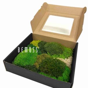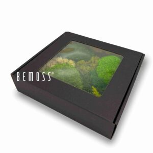 Die Moos-Musterbox Mini BEMOSS® ist ein praktisches Hilfsmittel, um stabilisiertes Moos und natürliche Pflanzen kennenzulernen, die bei der Herstellung von Moosprodukten BEMOSS® verwendet werden. Sie ermöglicht das Sehen, Berühren und Vergleichen verschiedener Moosarten noch vor dem Kauf eines Moosbildes, von Mooswänden oder eines anderen Moosprodukts.