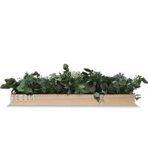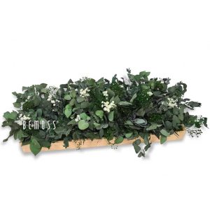 Die Moos Tischdeko PFLANZEN Pamonia ist eine perfekte Verbindung aus frischem Grün und zarten Naturelementen, die eine elegante und zeitlose Dekoration schaffen. In einem Holzrahmen vereinen sich verschiedene Nuancen tiefgrünen stabilisierten Mooses, üppigen Eukalyptusblättern und zarten weißen Blüten zu einer natürlichen, erfrischenden Optik. Diese Dekoration ist die ideale Wahl für alle, die sich einen Hauch Natur wünschen.