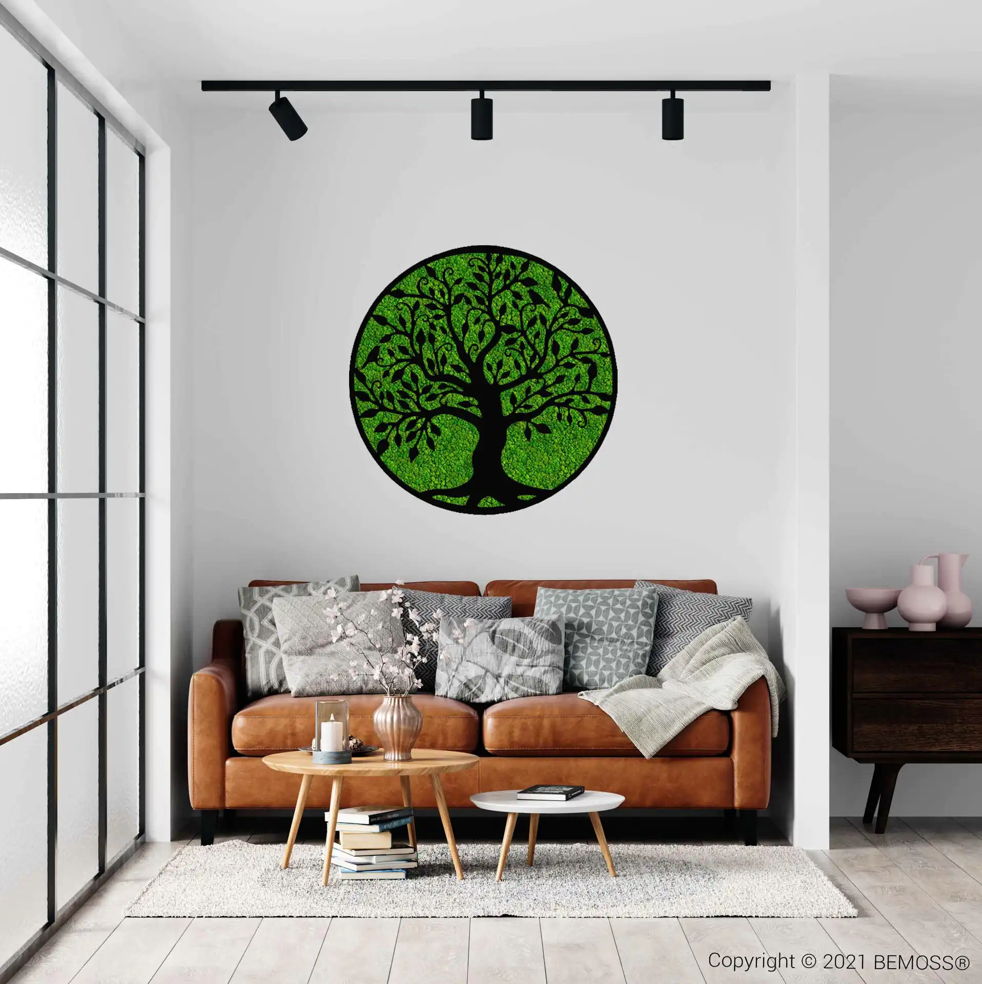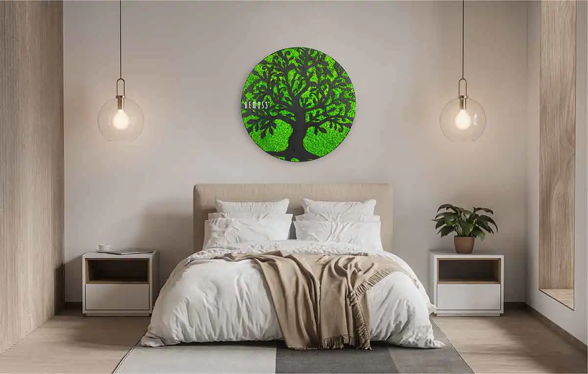 Entdecken Sie die Eleganz des Moosbilds Baum des Lebens Rund – erhältlich in zwei Varianten. Dieses einzigartige Stück ist pflegefrei, aus 100 % natürlichem, stabilisiertem Moos gefertigt und vereint Natur mit modernem Design. Die satte grüne Textur des Mooses und die feine Baum-Silhouette schaffen eine harmonische und zeitlose Wirkung – ein echter Blickfang für Ihr Zuhause.