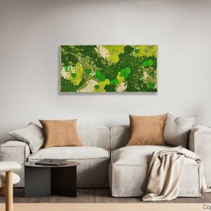 → Moosbilder oder Mooswände sollten möglichst wenig direkter Sonneneinstrahlung ausgesetzt werden. Sonnenlicht kann die natürlichen Pigmente, die während der Stabilisierung verwendet wurden, mit der Zeit leicht verblassen lassen.