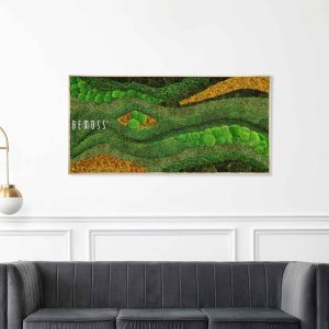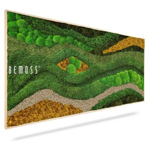 Moosbild BEMOSS® ORTHO TOCÓN Autumn bringt Harmonie von Farben und Texturen in Ihre Räume, inspiriert von der natürlichen Landschaft im Herbst. Zarte Kurven aus stabilisiertem Moos in sattem Grün, goldgelb und natürlichem Beige erzeugen den visuellen Eindruck eines warmen Herbsttages. Die Texturen des Mooses und natürlicher Elemente erinnern an eine ruhige Waldszene, die jede Wand erfrischen wird.