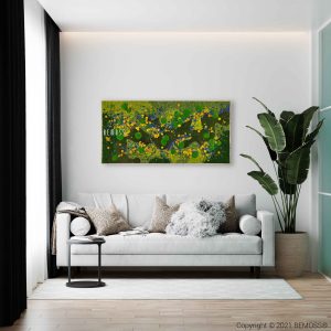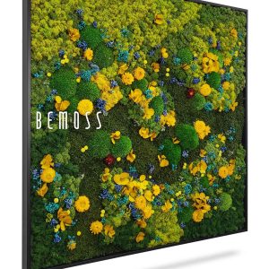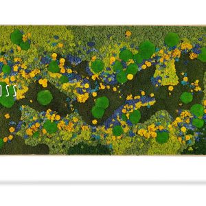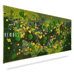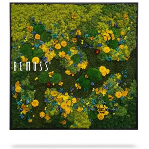 Moosbild BEMOSS® ORTHO TORRES ist ein wahres Kunstwerk, das mit seiner auffälligen Farbgestaltung beeindruckt. Dominierende Grüntöne werden durch leuchtendes Gelb, zartes Blau und dezente florale Akzente ergänzt. Dieses Bild ruft eine lebendige Wiesenlandschaft voller Leben und Energie hervor und schafft eine harmonische Atmosphäre in jedem Raum.