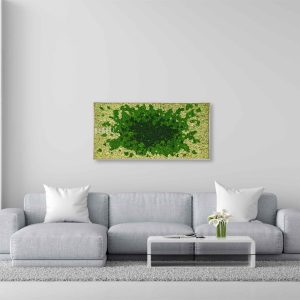 Moosbild BEMOSS® SPLASH Green ist die Verkörperung von Harmonie und natürlicher Schönheit. Dieses Bild kombiniert satte dunkelgrüne Moostöne mit kontrastierendem Beige, die zusammen den Eindruck einer frischen Waldlandschaft vermitteln, als ob Sie auf eine Karte der Natur blicken würden. Die dynamische Anordnung von Farben und Texturen zieht Sie in die ruhige Welt des Grüns, die den Geist beruhigt und den Raum belebt.