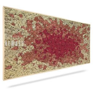 Moosbild BEMOSS® SPLASH Pink ist ein Kunstwerk, das mit seiner Sanftheit und Dynamik verzaubert. Die Kombination aus Rosa-, Beige- und zart braunen Tönen erinnert an eine blühende Wiese oder ein abstraktes Bild, das die Bewegung und Energie der Natur einfängt. Die detaillierte Struktur des stabilisierten Mooses erzeugt einen faszinierenden dreidimensionalen Effekt, der dem Raum eine einzigartige Atmosphäre verleiht.
