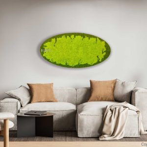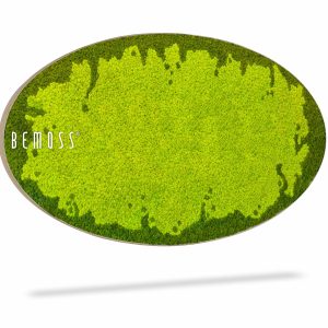 Moosbild Ellipse BEMOSS® MARE stellt die perfekte Symbiose von Natur und modernem Kunstwerk dar. Der leuchtende grüne Lichens in Tönen, die an ruhige Wiesen unter der Frühlingssonne erinnern, erzeugt ein erfrischendes und klares Aussehen. Durch seine elliptische Form wirkt das Bild besonders elegant und hebt sich in jedem Interieur hervor.