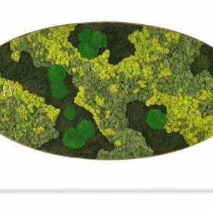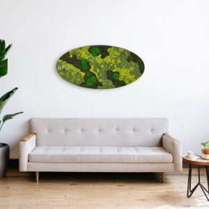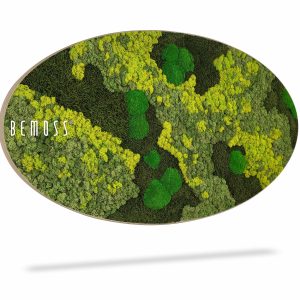Moosbild Ellipse BEMOSS® ORTHO LIME ist inspiriert von der Frische der Natur und sanften Grüntönen sowie Limettengrün. Durch die sorgfältig angeordneten Strukturen des stabilisierten Mooses erzeugt dieses Bild einen dynamischen visuellen Effekt, der an eine Wiese nach einem Sommerregen erinnert. Die Texturen des Mooses verschmelzen wunderschön und betonen die natürliche Schönheit. Die elliptische Form fügt einen modernen und eleganten Akzent hinzu, der in jedem Interieur hervorsticht.