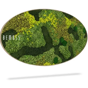 Moosbild Ellipse BEMOSS® ORTHO MEDIUM verzaubert mit seinem natürlichen Design und sanften Farbverläufen des stabilisierten Mooses. Durch die abgestimmten Grüntöne mit Akzenten in Hellgrün und Limettengrün erinnert dieses Bild an einen ruhigen Wald. Die Moostruktur, die sanfte Texturen mit reichen Hügeln kombiniert, erzeugt einen dynamischen und fesselnden Effekt, der in jedes Interieur passt.