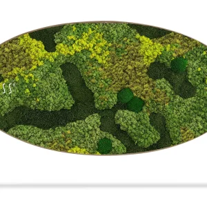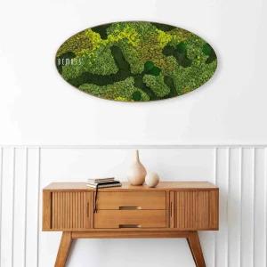 Ellipse BEMOSS® ORTHO MEDIUM bietet einen harmonischen Farbverlauf von grünem stabilisiertem Moos. Das Moosbild ist wartungsfrei, ökologisch und seine akustischen Eigenschaften tragen zur Schaffung einer ruhigen Atmosphäre bei. Handgefertigt in der Schweiz, mit der Möglichkeit, Größen und Rahmen anzupassen.