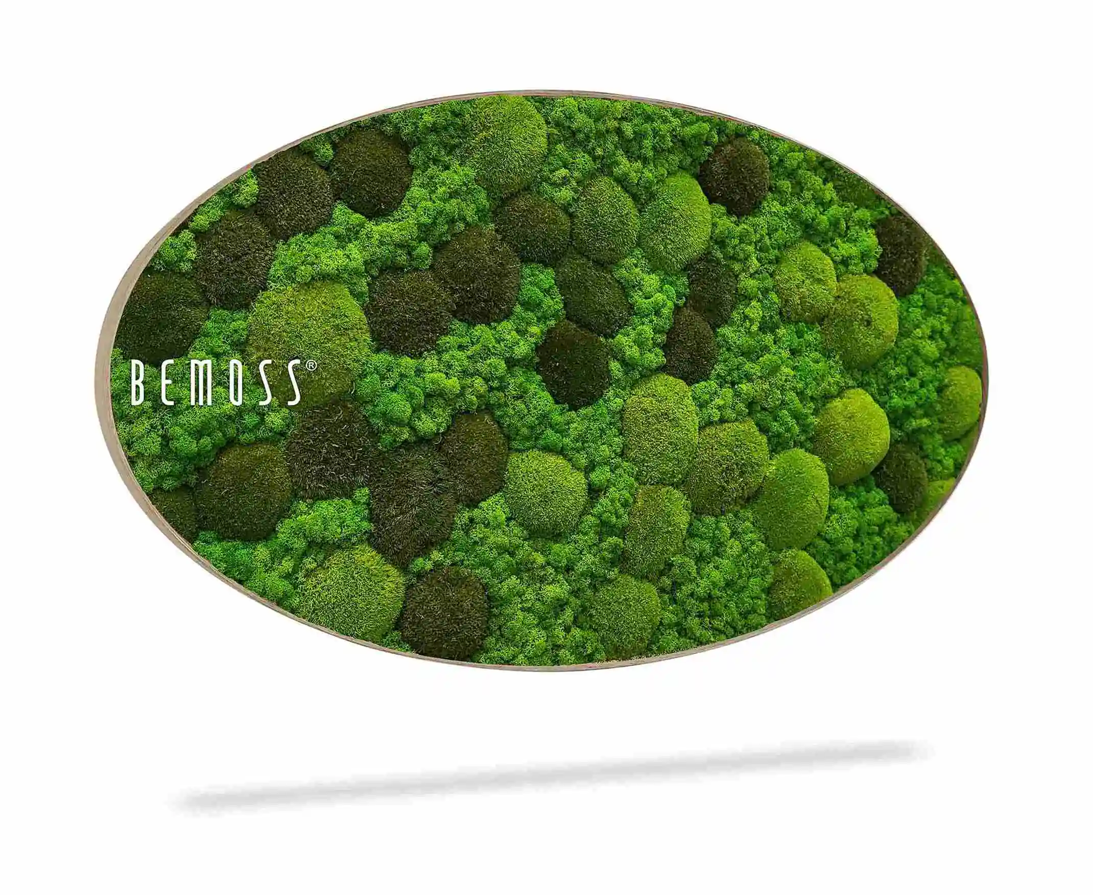 Moosbild Ellipse BEMOSS® ORTHO MONETO ist die perfekte Kombination aus Natur und modernem Design. Dieses zeitlose Dekorationsstück bietet eine vielfältige Palette von Grüntönen – von tiefem Dunkelgrün bis hin zu lebendig frischen Tönen, wodurch ein wunderschöner dreidimensionaler Effekt entsteht. Die glatten Linien der Ellipse verleihen dem Bild Sanftheit und Eleganz, wodurch es in jedes Interieur passt.