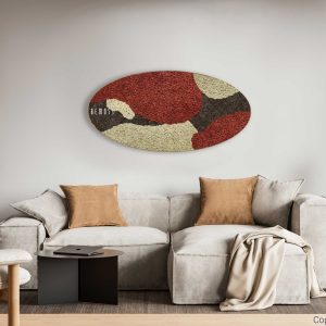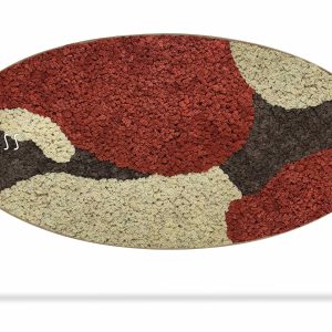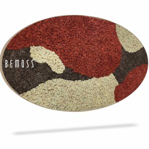 Moosbild Ellipse BEMOSS® ORTHO SIENNA ist ein wunderschönes Beispiel dafür, wie stabilisiertes Moos gewöhnliche Wände in ein Kunstwerk verwandeln kann. Die Hauptfarben des Bildes sind sattem Rot, warmem Braun und sanftem Beige, die zusammen eine visuelle Harmonie schaffen, die an eine Herbstlandschaft erinnert. Die Textur des stabilisierten Mooses bietet einen dreidimensionalen Effekt, der Blicke anzieht und dem Raum eine gemütliche Atmosphäre verleiht.
