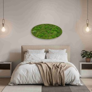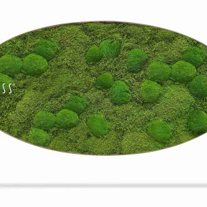 Moosbild Ellipse Flachmoos & Kugelmoos Aves ist die perfekte Kombination aus minimalistischer Gestaltung und natürlicher Kunst. Flachmoos bedeckt die Grundlage des Bildes mit einer zarten grünen Struktur, während das kugelige Moos Kugelmoos dem Bild einen lebendigen 3D-Effekt verleiht. Dieses Bild ist von der natürlichen Landschaft inspiriert und bringt ein Gefühl von Ruhe und Ausgewogenheit in Ihr Interieur.