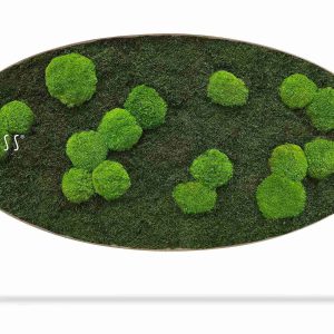 Das Moosbild Ellipse Flachmoos & Kugelmoos Light bringt die Kombination aus sanften Flächen von Flachmoos und markanten Kugelmoos-Kügelchen, die zusammen eine dynamische Landschaft schaffen. Dieses Bild, handgefertigt in der Schweiz, bereichert Ihr Interieur mit natürlicher Eleganz der Natur und moderner Kunst.