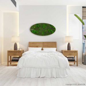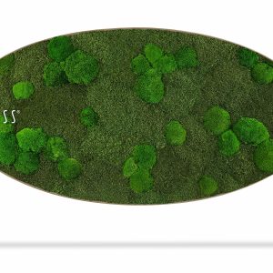 Schaffen Sie eine Oase der Natur in Ihrem Raum mit dem Moosbild Ellipse Flachmoos & Kugelmoos Natural. Dieses einzigartige Bild ist wartungsfrei und in verschiedenen Größen erhältlich, mit der Möglichkeit, es maßgeschneidert zu fertigen.