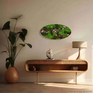 Das Moosbild Ellipse KUGELMOOS COSMO Burgundy bringt die perfekte Symbiose aus Natur und Design in Ihr Interieur. Die sanften Moosknäuel in verschiedenen Grüntönen schaffen natürliche Tiefe und Textur, während burgunderrote Akzente Wärme und Raffinesse vermitteln. Cremefarbene Details verleihen dem Bild Zartheit und Leichtigkeit, sodass es in jedem Raum hervortritt.
