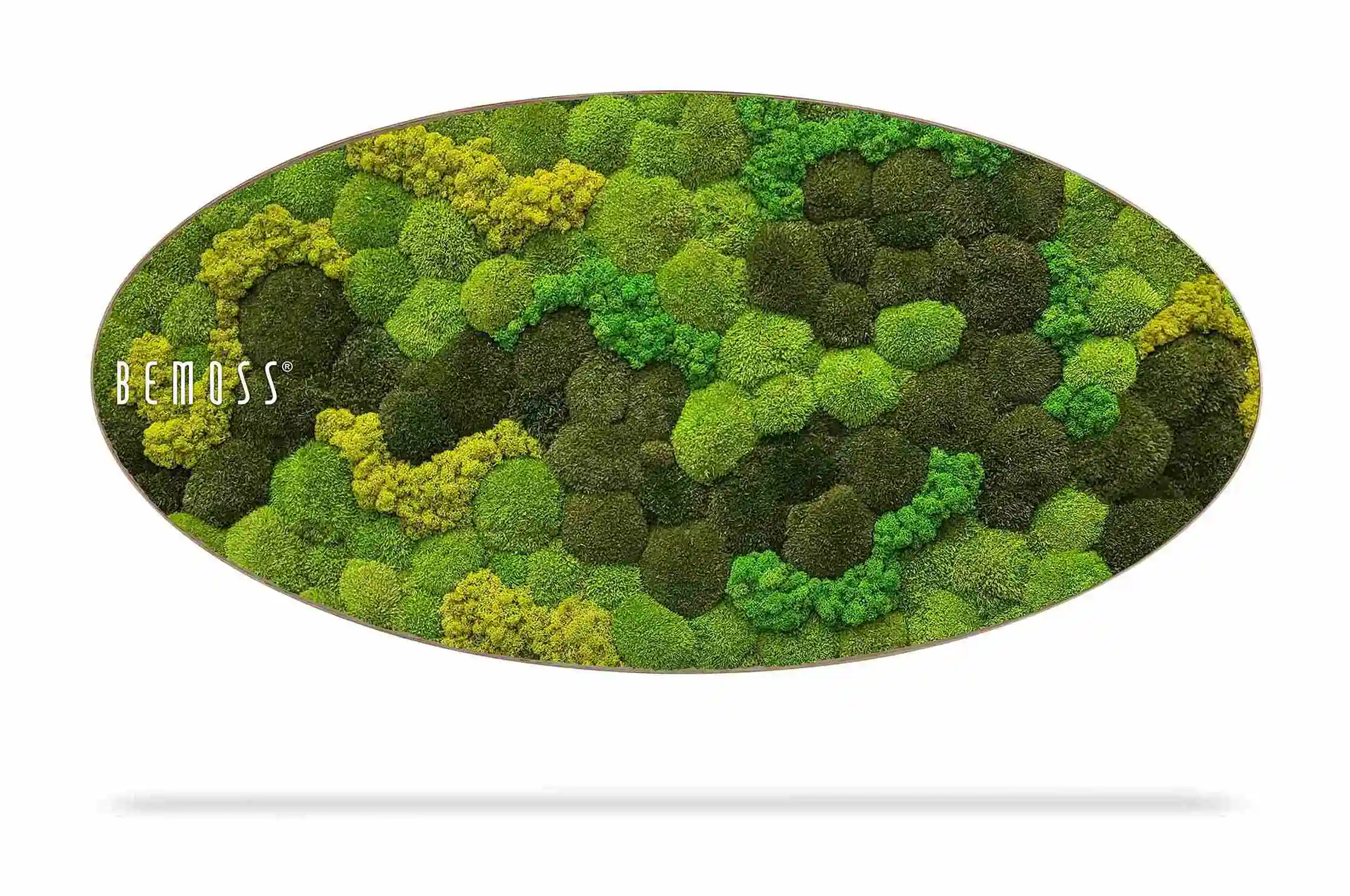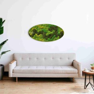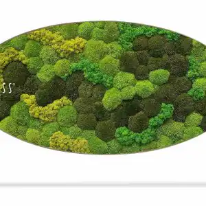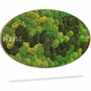 Das Moosbild Ellipse KUGELMOOS DUO Light Anento stellt eine einzigartige Verbindung von natürlichem Design und moderner Kunst dar. Die sanft abgerundete Form verleiht dem Bild einen eleganten Charakter, während die Kombination verschiedener Moosarten in Grüntönen eine dynamische Tiefe und einen natürlichen visuellen Kontrast schafft.