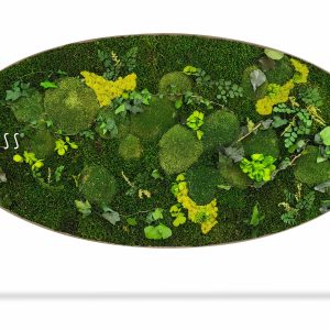 Das Moosbild Ellipse PFLANZEN Mesia Lime besticht durch die harmonische Kombination aus sattem Grün und zarten Limettenakzenten, die das Gefühl frischer Natur vermitteln. Dieses ökologische und hypoallergene Bild ist pflegefrei und gleichzeitig handgefertigt in der Schweiz, was es zu einer außergewöhnlichen Dekoration für jedes Interieur macht.
