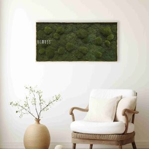→ Unsere Moosprodukte können mit Holz- oder Aluminiumrahmen in verschiedenen Designs oder auch rahmenlos geliefert werden. Die Bilder werden auf der Rückseite mit vormontierten Haken zum Aufhängen ausgestattet.