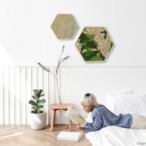 Entdecken Sie die Schönheit des Waldes mit dem Moosbild Hexagon BEMOSS® ORTHO FOREST, das natürliche Grüntöne in einem eleganten Design vereint. Dieses ökologische und hypoallergene Kunstwerk ist aus stabilisiertem Moos handgefertigt und kann individuell in der Größe angepasst werden.
