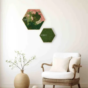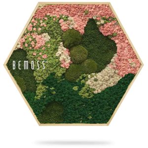 Bringen Sie Sanftheit und natürliche Frische in Ihr Zuhause mit einem einzigartigen Moosbild Hexagon. Rosatöne verschmelzen harmonisch mit frischem Grün und Cremefarben zu einer perfekten Komposition. Ökologisches stabilisiertes Moos ist pflegeleicht und behält seine Schönheit über viele Jahre hinweg.