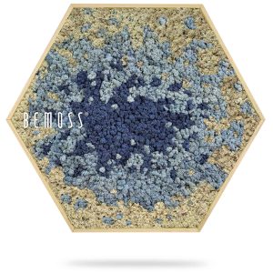 Das Moosbild Hexagon BEMOSS® ORTHO SPLASH fasziniert mit einer ausdrucksstarken Kombination aus Blau- und Beigetönen, die an ein aufgewühltes Meer erinnern. Dieses ökologische und pflegefreie Moosbild verleiht Ihrem Interieur moderne Eleganz und frische Energie.