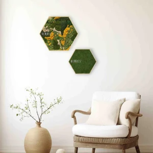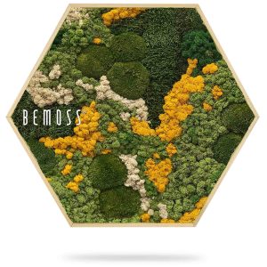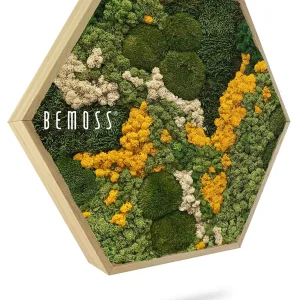 Wählen Sie zwischen Standardgrößen oder einer Maßanfertigung, die perfekt zu Ihrem Raum passt. Der Moosbild Hexagon BEMOSS® ORTHO YELLOW ist die ideale Ergänzung für Wohnzimmer, Büros oder moderne Interieurs – ein echter Hingucker mit natürlichem Charme.