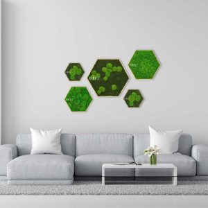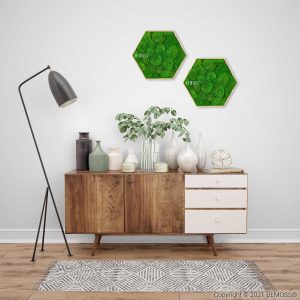 Bringen Sie ein Stück Natur in Ihre Räume mit dem Moosbild Hexagon KUGELMOOS Light green. Die frischen, kugeligen Strukturen in hellem Grün wirken lebendig und modern – ganz ohne Pflege. Ein stilvoller ökologischer Akzent für jedes Interieur.