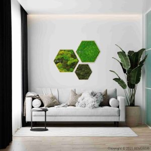 Alle Produkte von BEMOSS® werden handgefertigt in Deutschland. Moosbilder und Mooswände bestehen aus 100 % natürlichem Material, das durch ein spezielles Verfahren in einer Stabilisierungslösung konserviert wurde. Dadurch sind alle Moosbilder, Mooswände und stabilisierten Pflanzen pflegefrei – sie benötigen weder Tageslicht noch Wasser zum Erhalt. Die Lebensdauer der Moosbilder und -wände von BEMOSS® beträgt mehrere Jahre. Um diese möglichst lange zu bewahren, ist Folgendes entscheidend:
