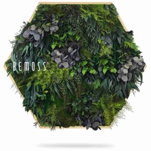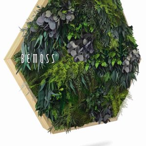 Das Moosbild Hexagon PFLANZEN Parador ist eine perfekte Verbindung aus natürlichen Elementen und modernem Design. Die visuell ausdrucksstarke Komposition aus verschiedenen Arten stabilisierter Pflanzen – darunter Moos, Farne und elegante Eukalyptusblätter – erzeugt einen dynamischen, dreidimensionalen Effekt. Dunkelgrüne Töne kontrastieren mit grauen Eukalyptusakzenten und verleihen dem Bild Tiefe und Raffinesse.