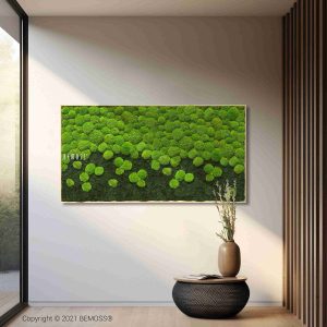 Alle Produkte von BEMOSS® werden handgefertigt in Deutschland. Moosbilder und Mooswände bestehen aus 100 % natürlichem Material, das durch ein spezielles Verfahren in einer Stabilisierungslösung konserviert wurde. Dadurch sind alle Moosbilder, Mooswände und stabilisierten Pflanzen pflegefrei – sie benötigen weder Tageslicht noch Wasser zum Erhalt. Die Lebensdauer der Moosbilder und -wände von BEMOSS® beträgt mehrere Jahre. Um diese möglichst lange zu bewahren, ist Folgendes entscheidend: