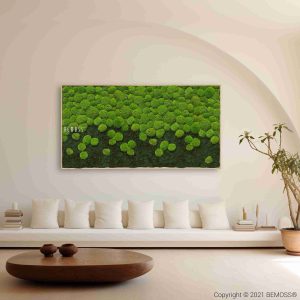 → Moosbilder oder Mooswände sollten möglichst wenig direkter Sonneneinstrahlung ausgesetzt werden. Sonnenlicht kann die natürlichen Pigmente, die während der Stabilisierung verwendet wurden, mit der Zeit leicht verblassen lassen.