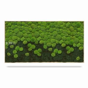 → Unsere Moosprodukte können mit Holz- oder Aluminiumrahmen in verschiedenen Designs oder auch rahmenlos geliefert werden. Die Bilder werden auf der Rückseite mit vormontierten Haken zum Aufhängen ausgestattet.