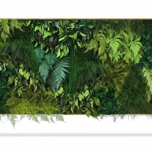 Moosbild PFLANZEN Lapas ist eine beeindruckende Dekoration, die eine unverwechselbare Atmosphäre der Natur in Ihren Raum bringt. Die Kombination aus sattgrünem stabilisiertem Moos, Farnen, zarten Gräsern und dekorativen Blättern schafft einen atemberaubenden visuellen Effekt, der Sie in einen ruhigen Wald versetzt. Dieses einzigartige Design passt in jedes Interieur, wo es mit seiner natürlichen Schönheit und den tiefen Details begeistert.
