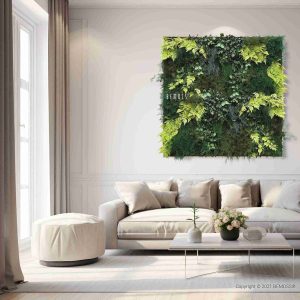 → Moosbilder oder Mooswände sollten möglichst wenig direkter Sonneneinstrahlung ausgesetzt werden. Sonnenlicht kann die natürlichen Pigmente, die während der Stabilisierung verwendet wurden, mit der Zeit leicht verblassen lassen.