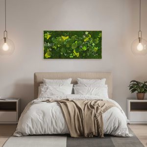 Moosbild PFLANZEN Mesia Lime bringt einen einzigartigen Hauch von Natur in jeden Raum. Seine Struktur kombiniert sattgrüne Moosknäuel mit zarten Akzenten in Limettengrün, während die einzelnen Flächen mit verflochtenen Blättern und Details ergänzt werden, die an Wiesenblumen erinnern. Dieses Design vermittelt den Eindruck einer natürlichen Szenerie, die Sie mit Ruhe und Harmonie umgibt.
