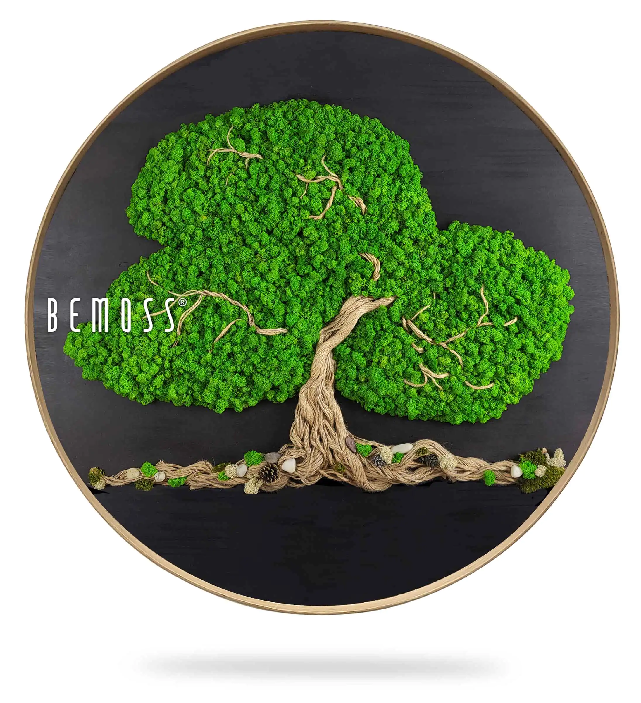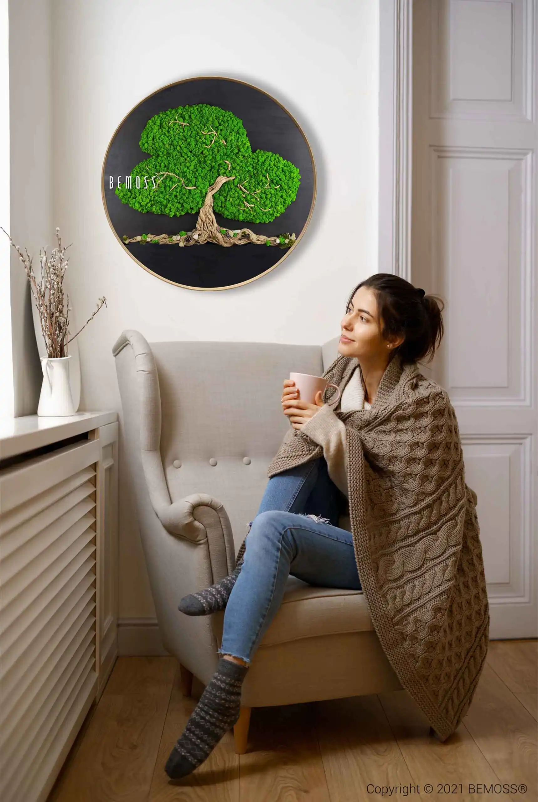 Das Moosbild Rund BAUM ARLES ist ein einzigartiges Kunstwerk, das natürliches Design und Kunst vereint. Die sattgrüne Baumkrone aus stabilisiertem Moos auf schwarzem Hintergrund besticht durch Tiefe und Harmonie. Dieses ökologische und pflegeleichte Bild zeichnet sich durch seinen einzigartigen Stil aus und ist in zwei Varianten mit Holzrahmen erhältlich. Ein wahres Meisterwerk für Ihr Interieur.