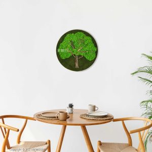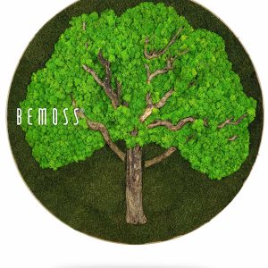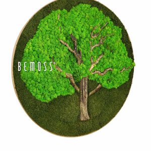 Das Bild Rund BAUM stellt die perfekte Verbindung von natürlicher Schönheit und künstlerischer Verarbeitung dar. Seine dominierende Krone besteht aus frischem stabilisiertem Moos in verschiedenen Grüntönen, während Stamm und Äste aus natürlichem Holz dem Werk ein authentisches Aussehen verleihen. Die Gesamtkomposition vermittelt den Eindruck eines ruhigen Waldes und erinnert an die tiefe Verbindung des Menschen mit der Natur.