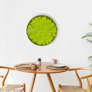 Moosbild Rund BEMOSS® MARE ist eine Feier der Natur in ihrer reinsten Form. Das leuchtende Grün des stabilisierten Mooses erinnert an frische Sommerwiesen, während seine hypoallergenen, pflegeleichten und ökologischen Eigenschaften sicherstellen, dass dieses Bild die perfekte Ergänzung für jeden Raum ist.