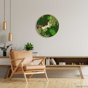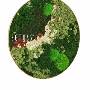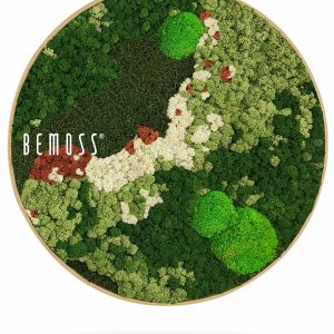 Moosbild Rund BEMOSS® ORTHO MANGO zeichnet sich durch harmonische Farben und eine elegante runde Form aus. Hypoallergen, pflegeleicht und ökologisch, mit hervorragenden akustischen Eigenschaften, erhältlich in verschiedenen Größen und Rahmendesigns.