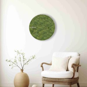 Moosbild Rund FLACHMOOS Light ist ein einzigartiges Naturaccessoire, das Ihren Innenraum in eine grüne Oase verwandelt. Das sanfte Hellgrün des stabilisierten Mooses erinnert an eine frische Sommerwiese und verleiht dem Raum ein Gefühl von Ruhe und Ausgeglichenheit. Die gleichmäßige Textur und die weiche Oberfläche schaffen ein elegantes, minimalistisches Design, das sowohl in moderne als auch in naturnah gestaltete Interieurs perfekt passt.