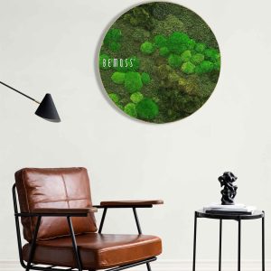 Das Moosbild Rund KUGELMOOS Minerva verkörpert die perfekte Harmonie von Formen und Farben, inspiriert von der natürlichen Vielfalt des Waldes. Die sanft hügelige Struktur des Mooses in unterschiedlichen Grüntönen erinnert an das abwechslungsreiche Terrain waldreicher Landschaften.