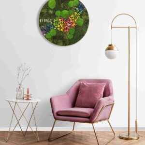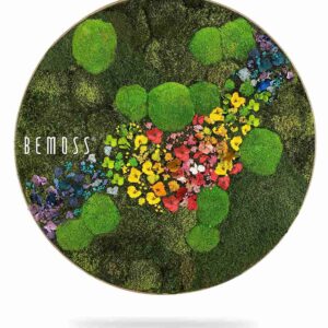 Das Moosbild Rund PFLANZEN Acebo ist eine farbenfrohe Symphonie aus stabilisiertem Moos und Blüten in Gelb-, Rot- und Violetttönen. Dieses einzigartige Kunstwerk handgefertigt in der Schweiz ist pflegefrei, ökologisch und hypoallergen – ein Highlight für jedes stilvolle Interieur.