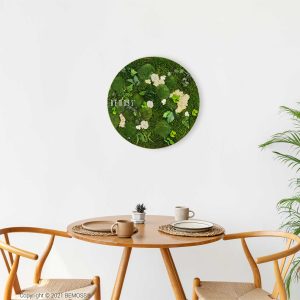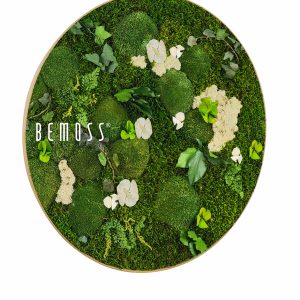 Das Moosbild Rund PFLANZEN Mesia Natural bringt eine perfekte Harmonie aus natürlichen Materialien und ästhetischem Design in Ihr Zuhause. Stabilisiertes Moos bildet die Grundlage, ergänzt durch zarte grüne Pflanzen und dezente weiße Akzente. Diese Komposition erinnert an ruhige Waldecken und wirkt wie eine Oase der Natur in Ihrem Interieur.