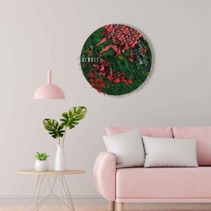 Das Moosbild Rund PFLANZEN Zorita beeindruckt mit dem faszinierenden Kontrast von sattem Grün des Mooses und den auffälligen roten Farbtönen der Farne und Blätter. Dieses einzigartige Bild, das die Atmosphäre eines Herbstwaldes evoziert, wird in der Schweiz handgefertigt aus stabilisiertem Moos, das pflegeleicht und ökologisch ist. Es wird zum dominanten Element Ihres Interieurs und belebt jeden Raum.