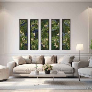 Die Bilder sind handgefertigt in der Schweiz aus ökologisch gewonnenem Islandmoos, das natürlich, hypoallergen und aus nachhaltigen Quellen stammt. Moosbilder besitzen zudem ausgezeichnete akustische Eigenschaften, die das Raumklima verbessern und für mehr Harmonie im Alltag sorgen.