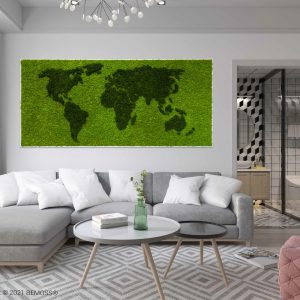 Machbild Weltkarte Islandmoos ist eine kostbare Ergänzung, die Kunst, Natur und modernes Design vereint. Die Kontinente aus feinem Islandmoos in dunkelgrünen Tönen kontrastieren mit einem helleren Hintergrund und erzeugen so einen fesselnden visuellen Effekt. Diese einzigartige Karte symbolisiert Ihre Verbindung zur Natur.