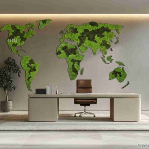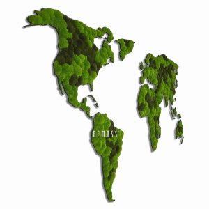 Dank der Eigenschaften des konservierten Mooses ist das Moosbild vollständig pflegefrei es benötigt weder Licht noch Wasser, bleibt dauerhaft frisch und weich. Es ist hypoallergen, ökologisch und besitzt schallabsorbierende Eigenschaften, was es zu einer großartigen Wahl für akustisch anspruchsvolle Räume macht. Jede Weltkarte ist handgefertigt in der Schweiz und kann in verschiedenen Größen sowie auch als Sonderanfertigung nach Maß produziert werden.
